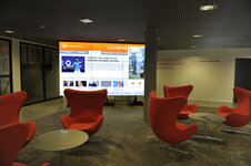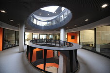Eleganter Auftritt, klassisches Interior Design und Koordination der klimatischen Anforderungen der Bauherrschaft in Einklang zu bringen. Neben dem totalen Umbau des Gebäudeinneren zu Büroräumen wurde auch die Fassade saniert und erneuert. Die Herausforderung bestand zum einen darin, die beiden Bauvolumen physisch und visuell zu verbinden, sowie in der für Büros recht untypischen Grundrissmasse attraktive und gesetzlich vertretbare Büroräume zu gestalten.