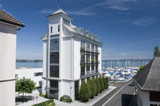 Im Rahmen der Neugestaltung und Erweiterung des Hafens Bottighofen wurden gleichzeitig die 4”Punkthäuser” und das Langhaus entworfen. Die Punkthäuser liegen in der Nähe des Hafens mit Blick zum See in Richtung Kreuzlingen; das Langhaus bildet die „Abgrenzung“ zu den Bahngleisen. Zusammen mit der Hafenanlage bilden sie ein einheitliches Ganzes.